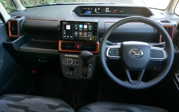 今回は、「タント ファンクロス」の広報車を借りてテストしました。クルマにはメーカーオプションのスマホ連携ディスプレイオーディオが装備されていたので、これと自分のスマートフォンをつないで利用します。