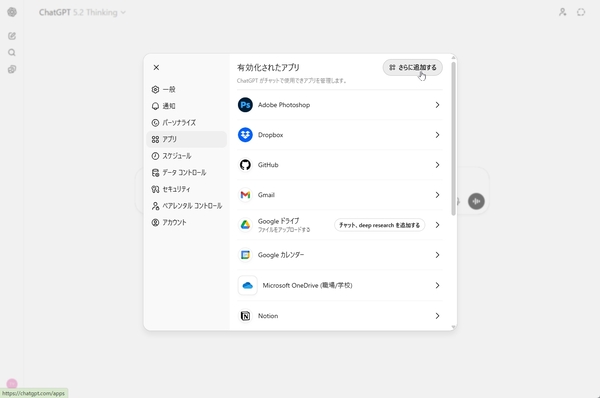 まずは、ChatGPTの設定から「アプリ」を開き、Adobe Acrobatを選択し、接続する。ChatGPTもAcrobatも無料アカウントでOK。Web版やデスクトップ版、iOS版で利用できる。Androidにも順次対応する予定。日本ユーザーも問題なくアクセスでき、欧州一部地域を除きグローバル展開されている。