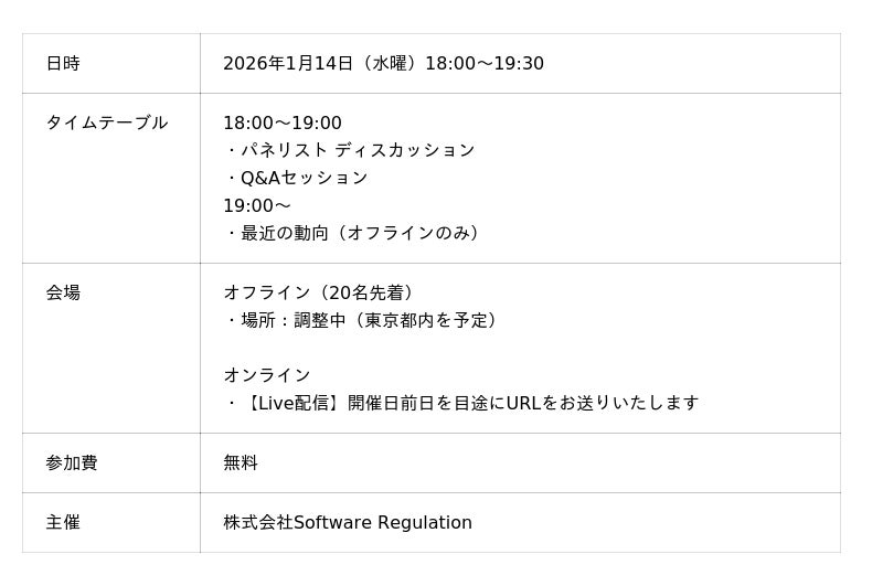 本イベントでは上記のようなトークテーマでディスカッションをする予定です。なお内容については予告なく変更する場合がございますので、ご了承ください。