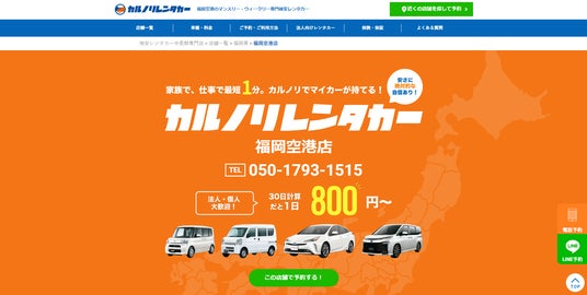 格安マンスリーレンタカー専門店、カルノリレンタカーが福岡県初進出『福岡空港店』をオープン