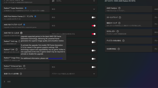 RX 9000シリーズは近年のRadeonの中でも特に出来と人気の高いGPUであるが、残念なことにRadeon関してのアップデートは出てこなかった。ただ昨年末に登場したRadeon Softwareの25.12.1で追加実装されたFSR “Redstone”に言及した。