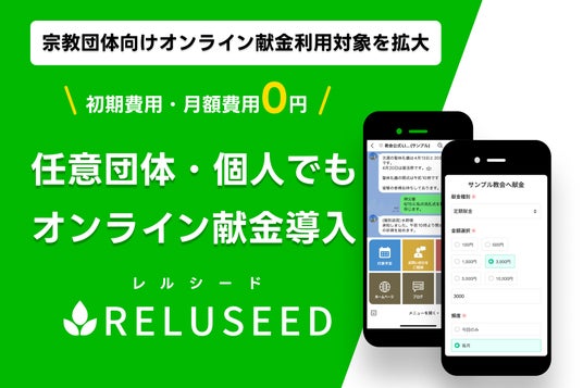 株式会社レルシード(本社:神奈川県横浜市、代表取締役:水野 勇望、以下「レルシード」)は、宗教団体向けオンライン献金サービス「レルシード オンライン献金」の利用対象を、宗教法人に限らず、任意団体・個人まで拡大して提供開始したことをお知らせします。