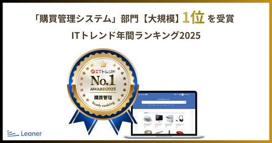 株式会社Leaner Technologies(本社:東京都品川区、代表取締役CEO:大平 裕介、以下「リーナー」)は、株式会社Innovation&Co.(本社:東京都渋谷区、代表取締役社長:幸 哲史)が運営するIT製品の比較サイト「ITトレンド」が発表した「ITトレンド年間ランキング2025」「購買管理システム・大規模」部門において、「リーナー購買」が1位を受賞いたしました。