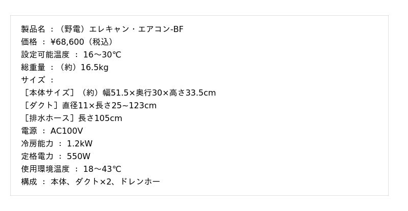 【(野電)エレキャン・エアコン-BF 】 https://www.logos.ne.jp/products/info/11658