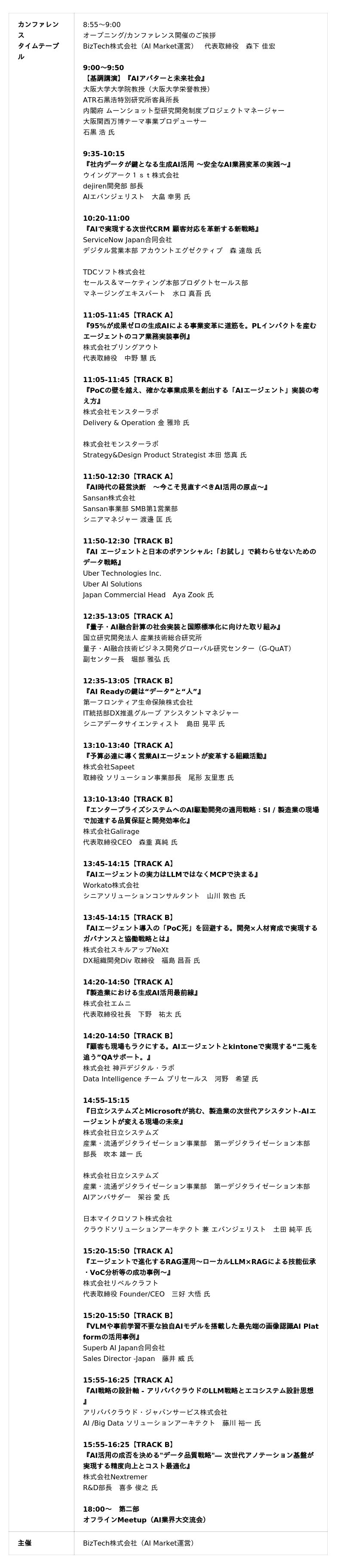 大阪大学栄誉教授 石黒 浩氏、ウイングアーク1st、ServiceNow Japan、TDCソフト、産総研、アリババクラウドなど国内外のAIトップランナーが多数登壇。国内最大級のAIカンファレンス!
