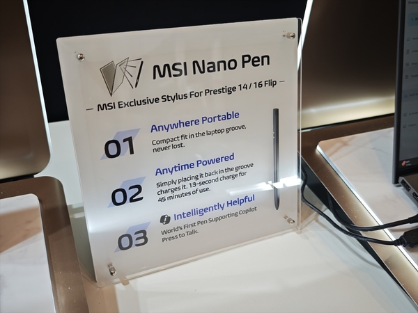 Flipシリーズで使用できる新しいスタイラスペン「MSI Nano Pen」は、わずか15秒の充電で45分間、30秒で1時間使用可能という驚異的な急速充電に対応しています。そしてビジネス機という位置付けながら、Prestigeシリーズには静音性を保ちつつ強力に冷やす「デュアル吸気ファン」と「ベイパーチャンバー」を採用し、高負荷な作業だけでなく、ゲーミングにも使えそうです。