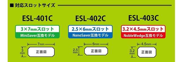MiniSaver(3×7mm)互換、NanoSaver(2.5×6mm)互換、NobleWedge(3.2×4.5mm)互換の3モデルがラインアップされている。