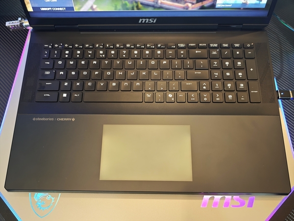 ゲーミングでもビジネスでも必要になるキーボードはCherry MXメカニカルキーボード(押し込むにしたがってキーが重くなるタイプ)で、打鍵感はかなり気持ちがいいです。もちろん、LEDで光ってゲーミング感を演出します(タッチパッドも光ります)。