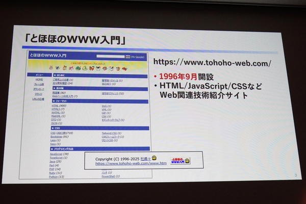 1996年に開設された「とほほのWWW入門」。プログラミング言語やフレームワークなど、Web技術の入門情報を網羅的に発信し続けており、最近では、陶磁器や洋楽、中国語、韓国語、タイ料理にまでコンテンツを広げている。「2025年は尻を叩かれて、AIの記事も載せている」と杜甫々さん。