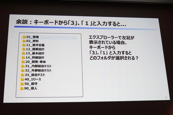 細かな工夫としては、大本のフォルダ名に2桁の固有数字を付与している。“マウス嫌い派”である杜甫々さんは、この数字を利用してキーボードのみでエクスプローラーを移動していたという。