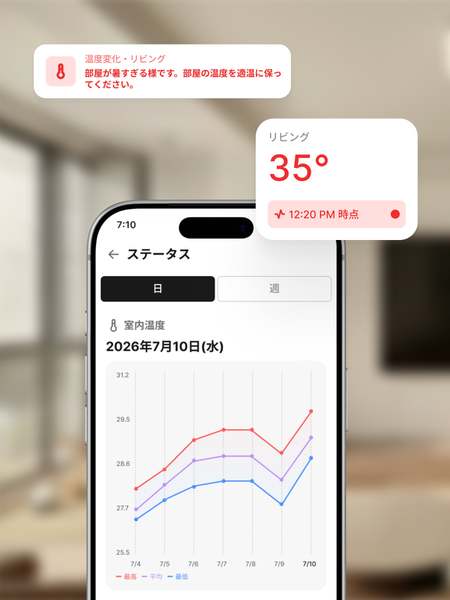 「Beiju」は、人感センサーによる活動停止アラート機能、温感センサーによる熱中症アラート機能を搭載。活動の状況や履歴を閲覧でき、カメラで画像や音声を取得しなくても、必要な情報を把握できるようにしているという。