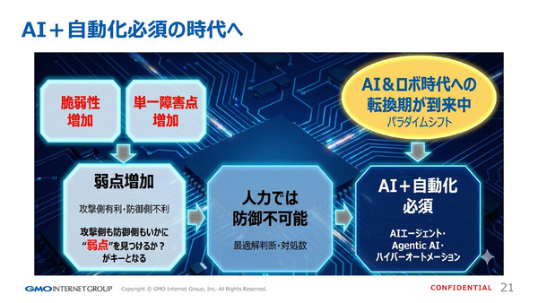 「もう人力では防御不可能な時代になっています。AIプラス自動化が必須で、まさにAI&ロボ時代へのパラダイムシフトが起きている最中です。もう使わざるを得ないところに来ていると思います」(奥野氏)