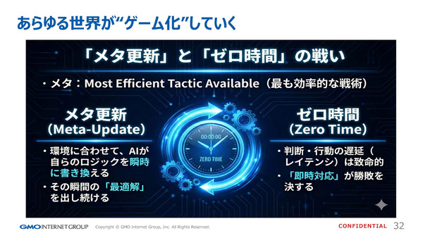 つまり「メタ(Most Efficient Tactic Available:最も効率的な戦術)更新」と「ゼロ時間」の戦いになる。そこでは、人間は個別の判断から退き、AIが正しく機能しているかを監視する「ガバナンス」や「審判」としての役割を担うことになる。