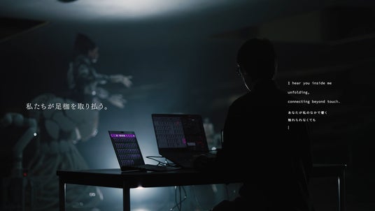 本CMのために渋谷慶一郎氏が新曲『Beyond Touch』を書き下ろし、アンドロイド・マリアはヴォーカリストとしてパフォーマンスするだけでなくAIで作詞も担当し、物理的な接触を超えて生まれる“つながり”や、人間とテクノロジーの新しい関係性を歌い上げています。