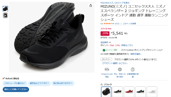 驚きの軽さ×クッション性×ゆったりした履き心地で支持されるMIZUNOのエスペランザー2が20%オフの5,541円で、Amazonにて割引販売中!