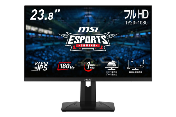 ゲーミングモニターのランキング第1位は、MSIの「G244PF-E2」が獲得した。23.8型フルHD(1920×1080ドット)の「RAPID IPS」パネルを採用し、最大180Hzのリフレッシュレート、1ms(GTG)の応答速度などにより、残像感のない滑らかな映像でゲームが楽しめる。暗闇のシーンでも「ナイトビジョン機能」がしっかりと視界を確保。チルト、スイーベル、ピボットなど調整機能も豊富なコスパに優れた1台だ。