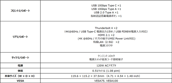 手のひらサイズのコンパクトなフォームファクターでありながら、2つのThunderbolt 4ポートを備え、最大4台のディスプレイ出力に対応する仕様となっている。これによりマルチタスク作業やデジタルサイネージなどの利用シーンにも適している。また、デュアル2.5Gイーサネットポートを搭載し、高帯域幅かつ安全なネットワーク接続を提供している。