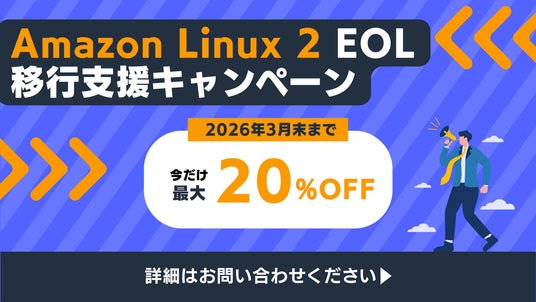 この度、当社は AWS 環境で広く利用されているオペレーティングシステム Amazon Linux 2 のサポート終了(EOL:End-of-Life)に向け、移行支援を強化した「Amazon Linux 2 EOL 移行支援キャンペーン」を開始いたします。