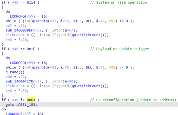 UDPGangsterは、UDPプロトコルを使ってC2サーバーと通信するUDPベースのバックドアです。このマルウェアの名前は、サンプル内で見つかった埋め込みのPDBパスから取られました。