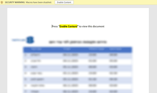 この手法は目くらましとして使用されており、文書内に無害な画像を表示する一方で、同一ファイル内の悪意のある活動を隠蔽します。最初のフィッシングメールはトルコの受信者を標的にしていましたが、表示される画像はイスラエルのめったに起こらない計画停電のスケジュールでした。別の地域を標的にした関連する活動については、後ほど説明します。
