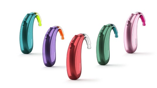 小児専用補聴器である「フォナック スカイ」シリーズは、カラフルな本体とフックを選んで自由に組み合わせられる選択性を持ち、こどもの聞こえの環境に特化した処方式「オートセンス スカイ OS」を搭載しています。「子どもは小さな大人じゃない」という哲学のもと、小児に特化した聴覚補聴器の研究・開発チームをもつメーカーとしてのフラッグシップモデルともいえる製品です。