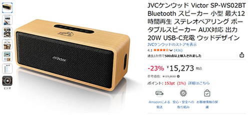 天然木×20Wステレオ。Victorの小型Bluetoothスピーカーが23%オフ