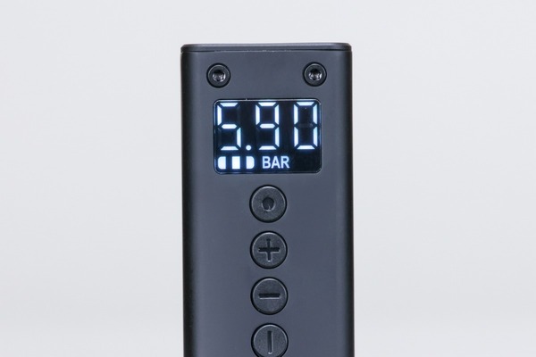 使い捨てのCo2ボンベやコンパクトな空気入れより便利なのが、空気圧を1 PSI単位で指定できること。本体をタイヤのバルブに接続し、空気圧を指定した後に電源ボタンを短く押すと、そのまま充填が開始されます。現在の空気圧がリアルタイムに表示され、指定空気圧に到達すると自動停止。もう、空気入れに汗をかくことはありません!