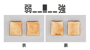 パンの厚みや枚数に合わせたコース設定と、弱~強まで5段階に焼き色調整が可能。