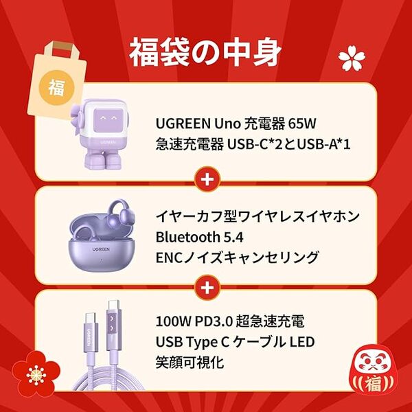 UGREENの人気商品が3点セットになった「UGREEN 新春福袋・3点特別セット」が、Amazonタイムセールに登場。
