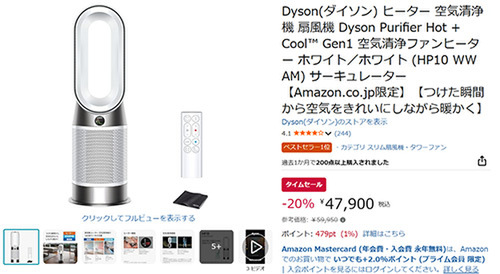 【Amazonタイムセール】Dyson Purifier Hot+Cool Gen1(HP10 WW AM)登場!