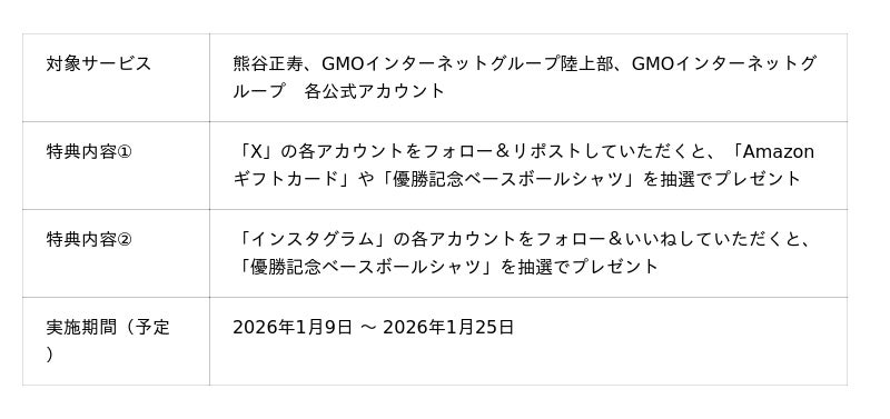 今回の優勝と日頃のご支援への感謝の気持ちを込めて、GMOインターネットグループ各社にて、ニューイヤー駅伝 初優勝「応援ありがとうキャンペーン」を開催いたします。