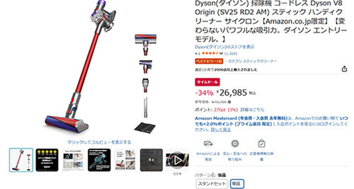 2万円台で選べるダイソン。ベストセラー1位「V8 Origin」が34%オフ