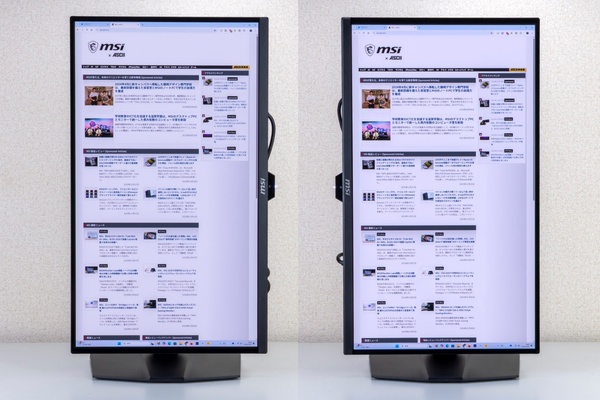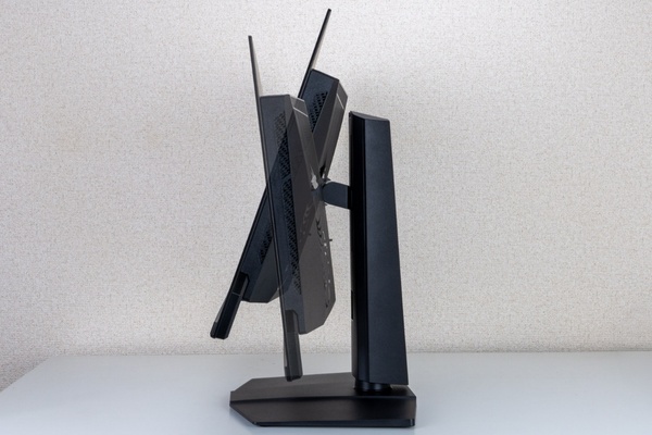 実際に製品を設置し、FPSゲームを中心とした試用してみた。スタンドの調整機構は、チルト、スイベル、高さ調整、ピボットのすべてに対応しており、自分にとって最適なポジションをミリ単位で設定可能。画面表面のコーティングにより、反射を抑えつつもQD-OLEDの鮮やかな発色がダイレクトに伝わってくる。