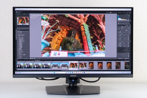 ゲームだけでなくクリエイティブ作業にももってこい。WQHDの解像度があれば、作業領域も十分確保でき、スクロールしてもヌルヌルと見やすいため、作業効率のアップにもつながる。色域のカバー率は、sRGBが100%、AdobeRGBが98%、DCI-P3が99%と必要十分なので、校正作業もこなせる。