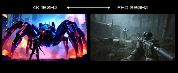 その悩みを、ゲーミングディスプレー「M27UP」なら解決できる。必要に応じて「4K(3840×2160ピクセル)/160Hz」と「フルHD(1920×1080ピクセル)/320Hz」を切り替えできるデュアルモードに、GIGABYTE製ディスプレーとして初めて対応した製品だからだ。