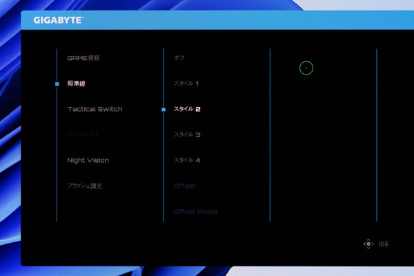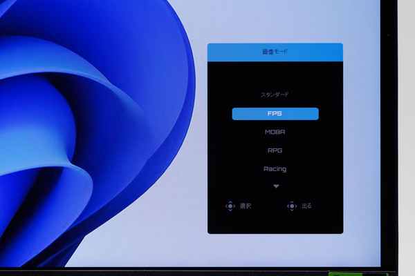 OSDメニューから、手動で各プリセットを切り替えることも可能。AIによる自動最適化にすべてを任せるだけでなく、自分の好みやプレイするタイトルに合わせて、最適な表示モードをユーザー自身で選択できる柔軟性を備えている