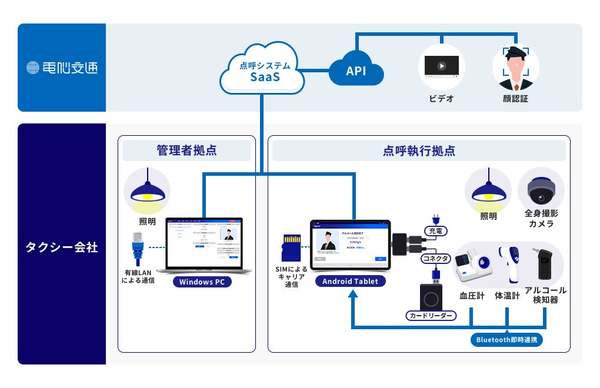 クラウド型点呼システム「電脳点呼」は、同社が開発し2025年4月から提供しているタクシー事業者向けクラウド型点呼システム。遠隔点呼および自動点呼に対応しており、事業規模や勤務形態に応じた柔軟な点呼運用を行えるという。「電脳点呼」の導入に当たっては、Bluetooth連携が可能な血圧計、体温計、アルコール検知器の準備が必要とのこと。