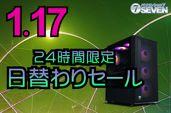 パソコンショップSEVENを運営するBTOパソコンメーカーであるセブンアールジャパンは、1月17日に『2026/1/17 24時間限定セール』を実施する。このセールでは、最新のゲーミングPCやデスクトップPCが最大81,000円の割引を受けられるチャンスがある。