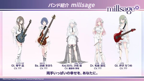 発表会ではゲームの詳細については触れられなかったものの、「MyGO!!!!!」「Ave Mujica」「夢限大みゅーたいぷ」の3バンドのほか、新たなバンドである「millsage」「一家Dumb Rock!」が登場することが明かされた。