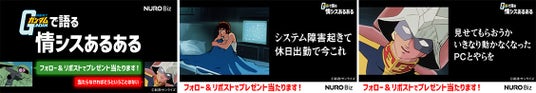 NURO Biz公式Xアカウント(@NUROBizbySony)で、情シス担当者が思わず共感できる「情シスあるある」を、『機動戦士ガンダム』の名シーン・名ゼリフとともに投稿します。「見せてもらおうか、いきなり動かなくなったPCとやらを」、「システム障害起きて休日出勤で今これ」など、情シスならば一度は経験したことのあるシーンを動画付きでお届けします。