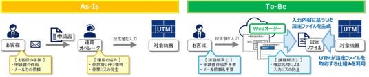 その一例として、人の手を介すことが多かったホワイトリスト登録やポリシー変更作業もセキュリティ運用自動化開発サービスにより、現場ユーザーの要望する登録・変更内容をそのままセキュリティ装置に反映するような仕組みに変えることができます。