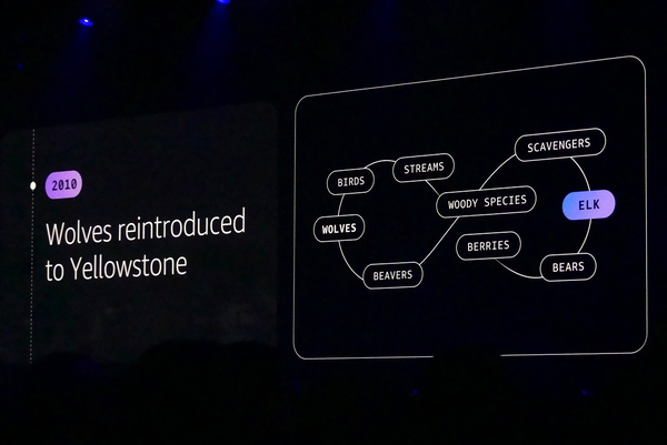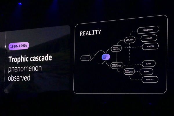2010年代、再びオオカミを公園に戻すと、公園はゆっくり回復していく。「植物が戻り、ビーバーが戻り、川の流れすら変わった。オオカミは川を動かしたのではなく、システム全体の動作を変えたのです。捕食者と被捕食者という単一のフィードバックループがシステム全体のバランスを再形成した。構造が変化し、行動が変わる。フィードバックが変わると、結果も変わる。これがシステム思考と呼ばれるものだ」とボーガス氏は指摘する。