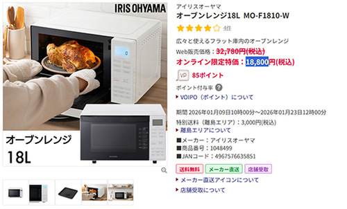 アイリスオーヤマ オーブンレンジ18L MO-F1810-W