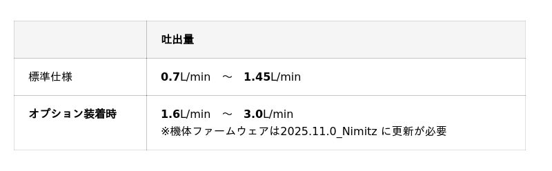 ~新オプションを装着で、AC機の吐出量が最大3.0L/minに~