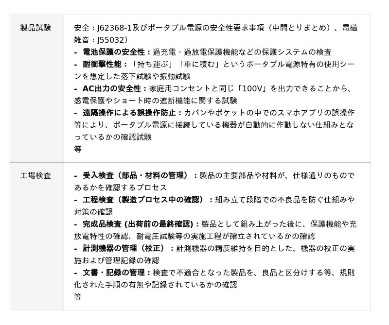 ※ 詳細については、経済産業省が主導したガイドライン「ポータブル電源の安全性要求事項(中間とりまとめ)」をご確認ください。