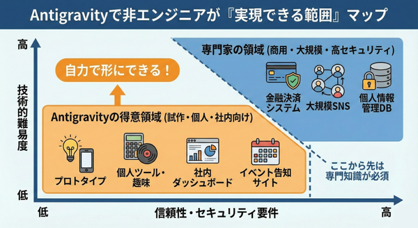 まずはっきりさせておきたい。Antigravityを使えば、誰でもワンクリックで安全な商用サービスが完成するという話ではない。