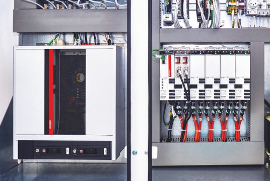 制御盤格納型産業用PCのC6675(左)と、AX8000多軸サーボシステム(右)。C6675は将来的に、AIによる機能拡張にも十分対応可能な演算性能を提供。(写真提供:ベッコフオートメーション)