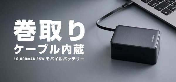 エレコムは、USB Type-Cケーブル一体型の容量10,000mAhモバイルバッテリー「DE-C82L-10000BK」と「DE-C82L-10000WF」を1月中旬に発売すると発表した。
