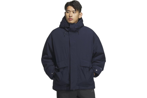 機能性とゆとりある着心地を両立したアディダスのマストハブ オーバーサイズフィット パデッド ユーティリティパーカー。